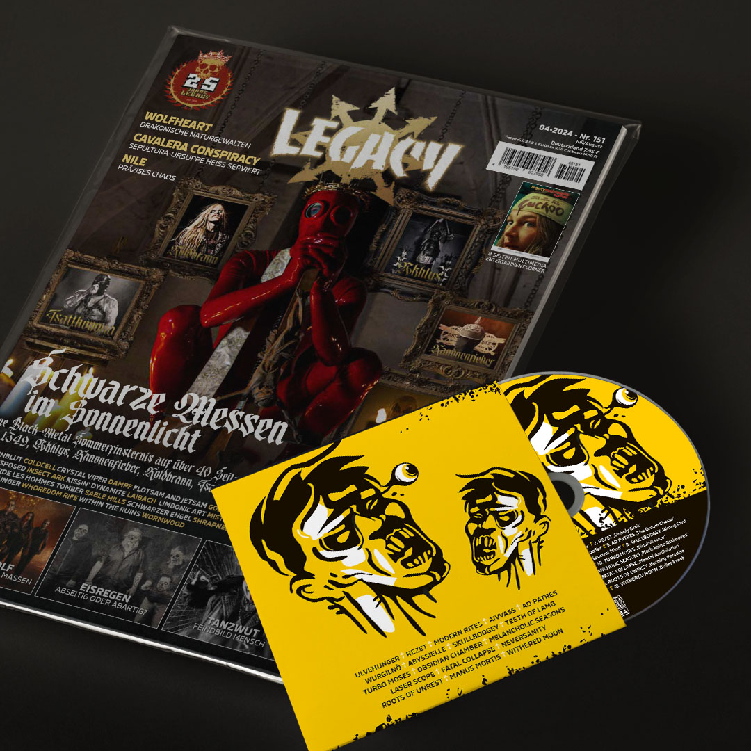 Schwarzmetallische Messen im Sonnenlicht: Weit von einem Sommerloch entfernt, präsentiert die Legacy-Ausgabe #151 auch dieses Mal wieder über 220 Seiten schwermetallischen Inhalt. Anstatt die Cover-Seite einer einzigen Band zu überlassen, grüßen dieses Mal fünf Black-Metal-Künstler und -Truppen, welche mit ihren kommenden Alben den Sommer 2024 verdunkeln: 1349, Akhlys, Kanonenfieber, Koldbrann und Tsatthoggua berichten ausführlich über ihre Kunst und den momentanen Zeitgeist: Steht die Welt wirklich am Abgrund? Und wenn ja, wirkt sich das auf zukünftige metallische Kunstwerke aus? Abgerundet und umrahmt wird die Titelstory von 10 Black-Metal-Demo-Empfehlungen sowie Dutzenden Interviews mit schwarzmetallischen Aufrührern und Gottlosen wie Seth, Limbonic Art, Regarde Les Hommes Tomber und vielen mehr.